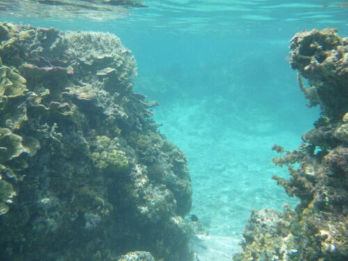 ビーチの先200mほどのところにリーフエッジがあり、砂浜からリーフエッジまでが天然のプールのようになっている。