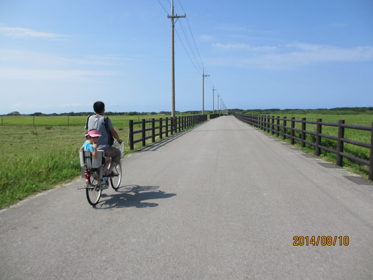 サンゴが隆起してできた島には山が無く、平坦な道なので自転車をこぐと楽チン。