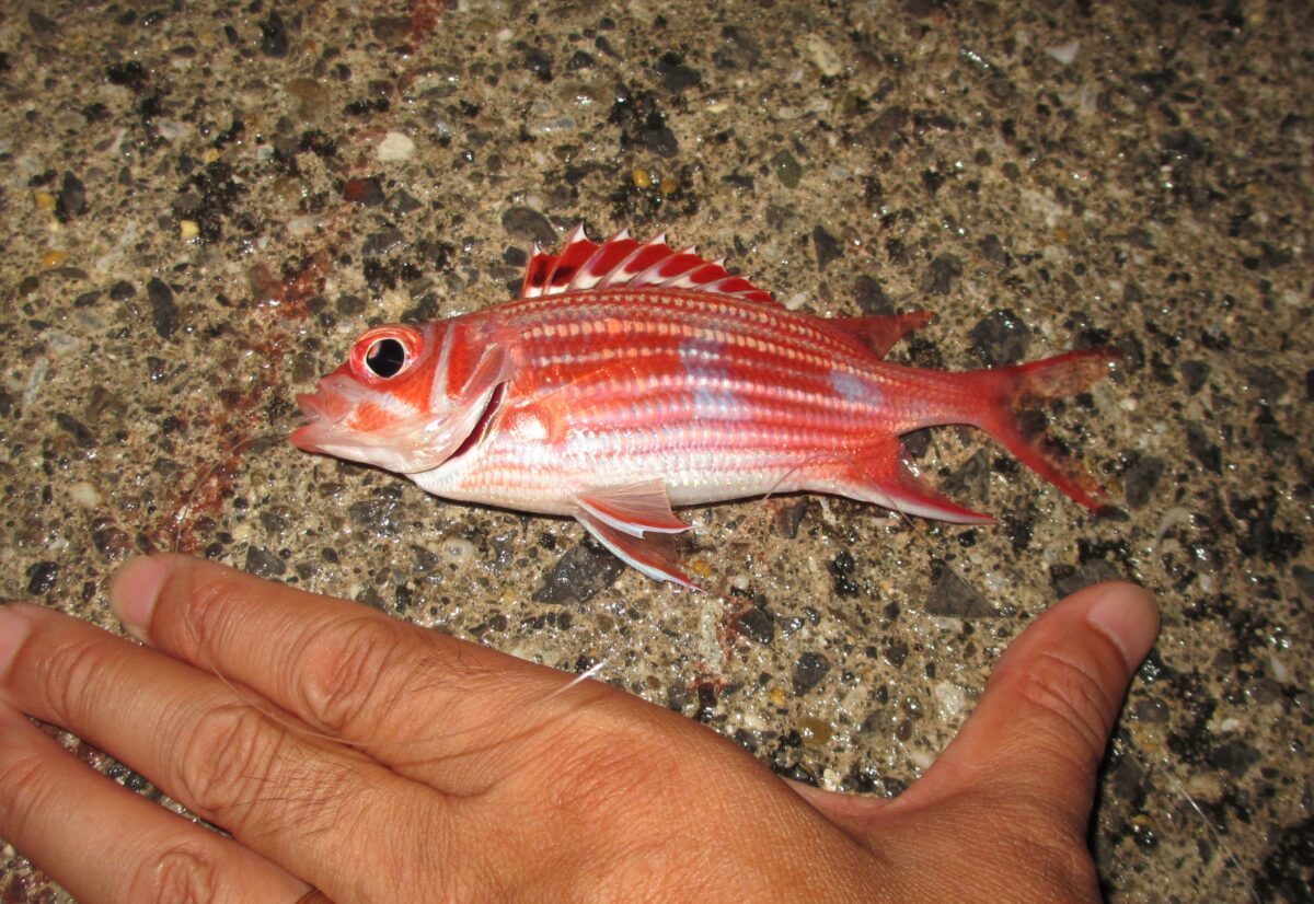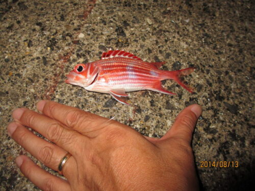幸運にもこの小さなきれいな赤の魚を釣ることができましたが、これも心の中の願いが流れ星に届いたおかげか?