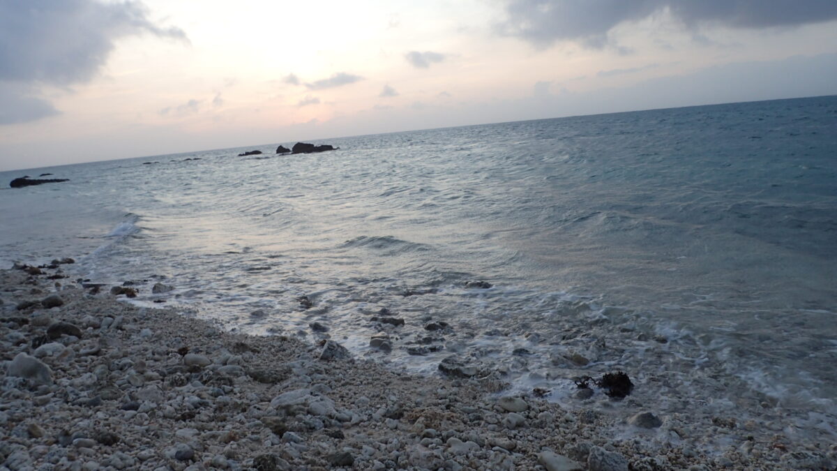 白いサンゴの砂が保護色となって見えずらいが、偏光サングラスをかけてよ~く海中を見ていると、コトヒキが時々猛スピードで泳いでいる。