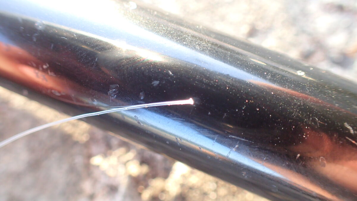 置き竿には反応がないので、エサを確認するためにリールを巻きあげるとエサがないことに気づいた。