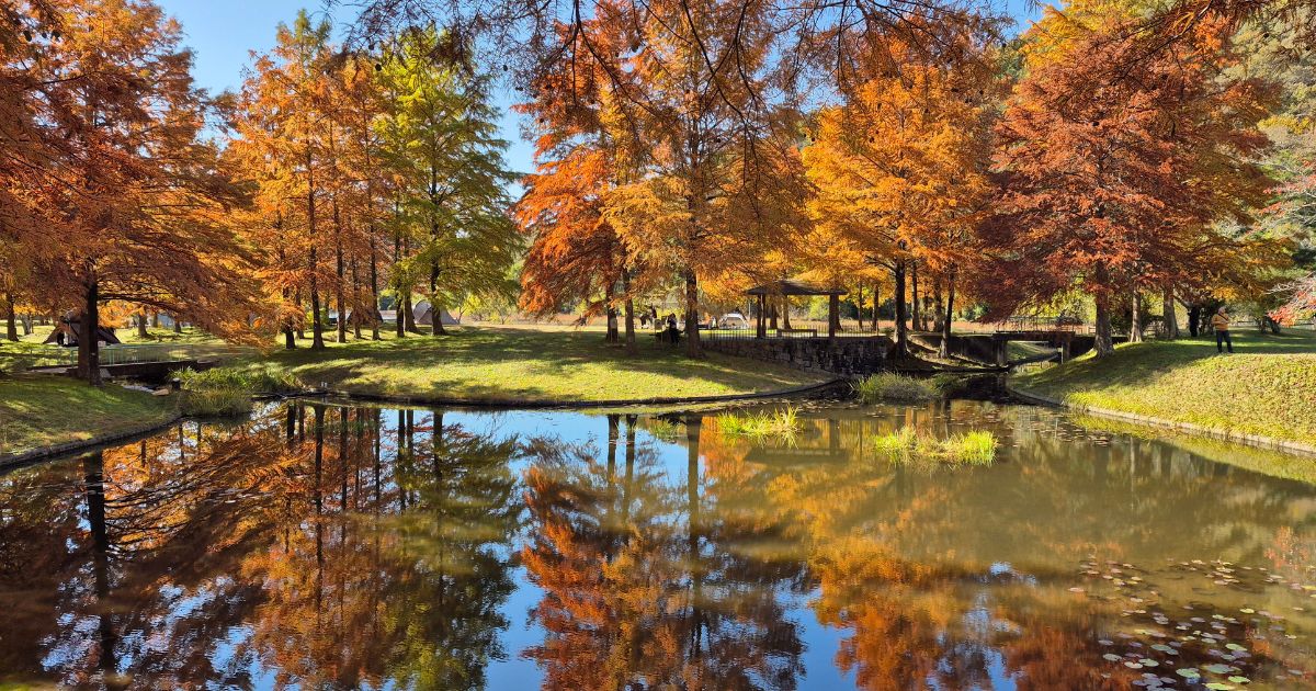 兵庫県三田市で撮影した小野公園が、インスタ上でアクセス数急増!園内の池の水面に映し出された、あまりにも鮮やかで幻想的な「紅葉のリフレクション」写真。ネットの... -
