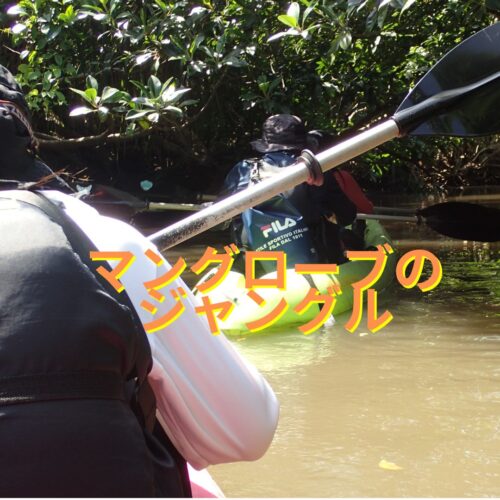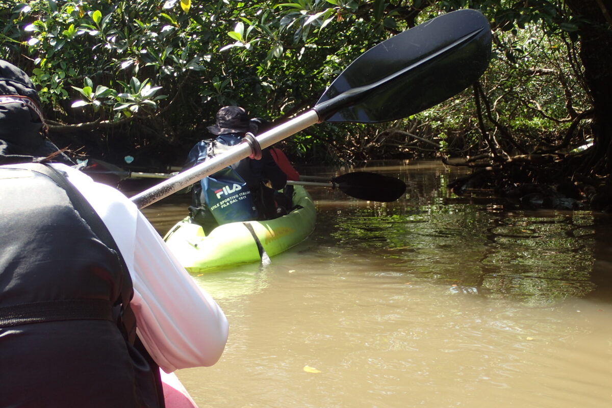 満潮近くで狭くなった小川の中を、マングローブに引っ掛からないよう細かいパドルさばきでカヤックを進めました。
