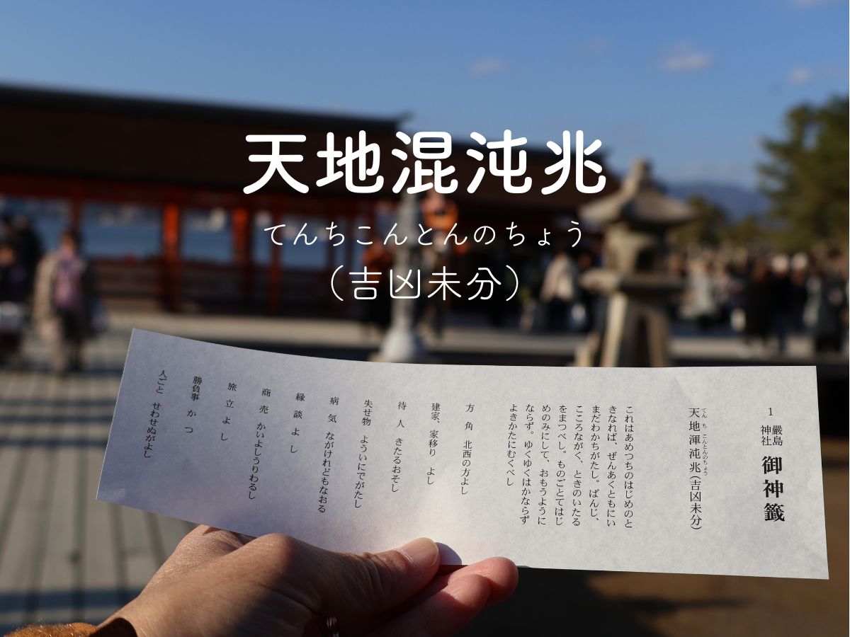 私自身、いろいろなところでおみくじを引いていますが、見たこともない天地混沌兆(てんちこんとんのちょう)=吉兆未分なるものがでてびっくりしました。