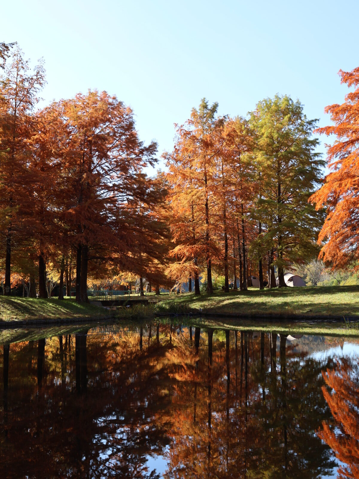 兵庫県三田市で撮影した小野公園が、インスタ上でアクセス数急増!園内の池の水面に映し出された、あまりにも鮮やかで幻想的な「紅葉のリフレクション」写真。ネットの...