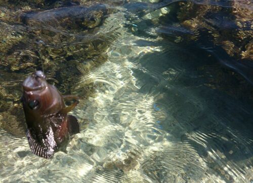 私もシュノーケリングでカラフルな魚たちを見て楽しんでいましたが、見つけたんですミーバイを。
