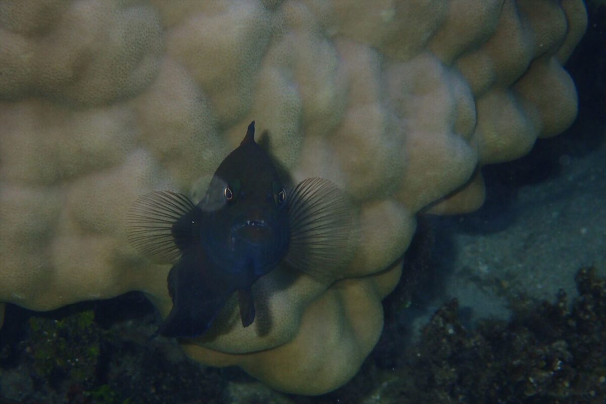 サンゴとサンゴの間の穴になっているところを探すといました、でもすぐに隠れます。