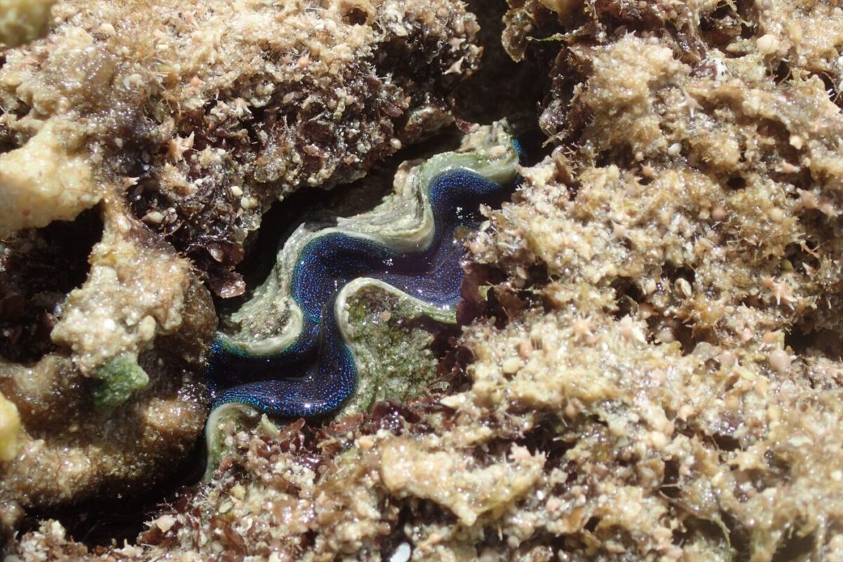 サンゴの間にはシャコガイも生息しているようです。手を挟まれると離してくれないみたいなので、気を付けましょう。